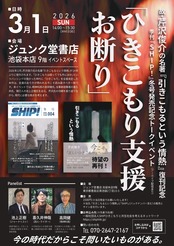 3月1日にジュンク堂書店で開かれる本イベントでは、精神科医の高岡健氏、当事者経験者の喜久井氏、発行人の池上正樹氏を迎え、芹沢氏の功績を振り返りながら、現代に必要な視点を考える。SHIP!第4号には「ひきこもり支援 お断り」の記事として掲載。(視聴費1500円 SHIP!第4号1100円)